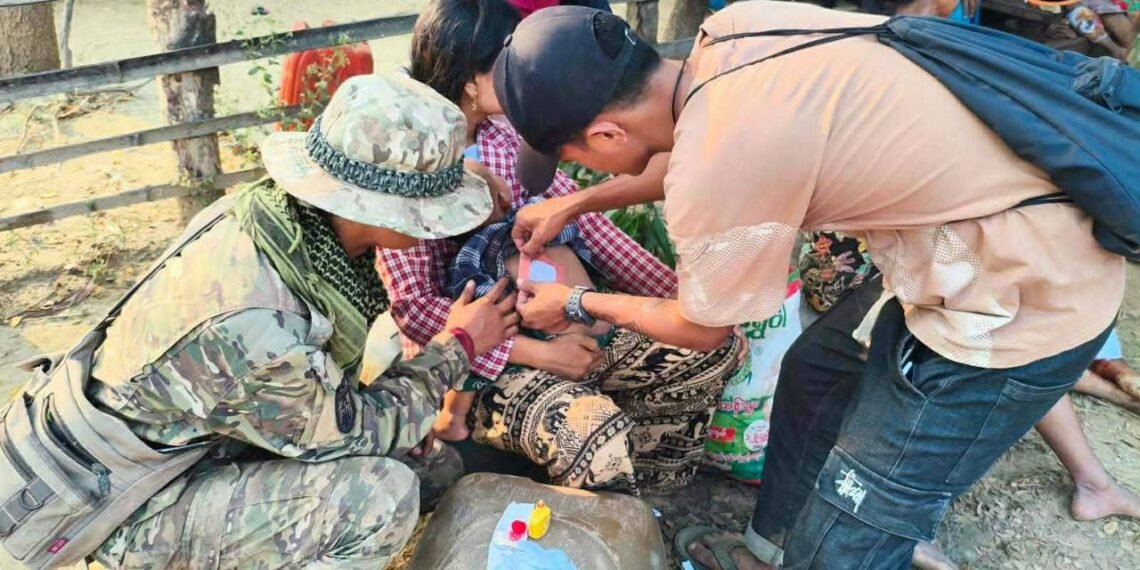 ညောင်လေးပင်မှာ စစ်ကော်မရှင်တပ်ကြောင့် ဒဏ်ရာရလာတဲ့အရပ်သားတွေကို ပကဖမှဆေးကုပေး