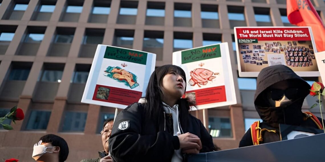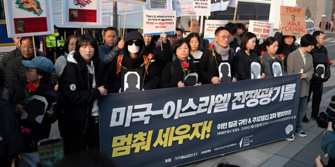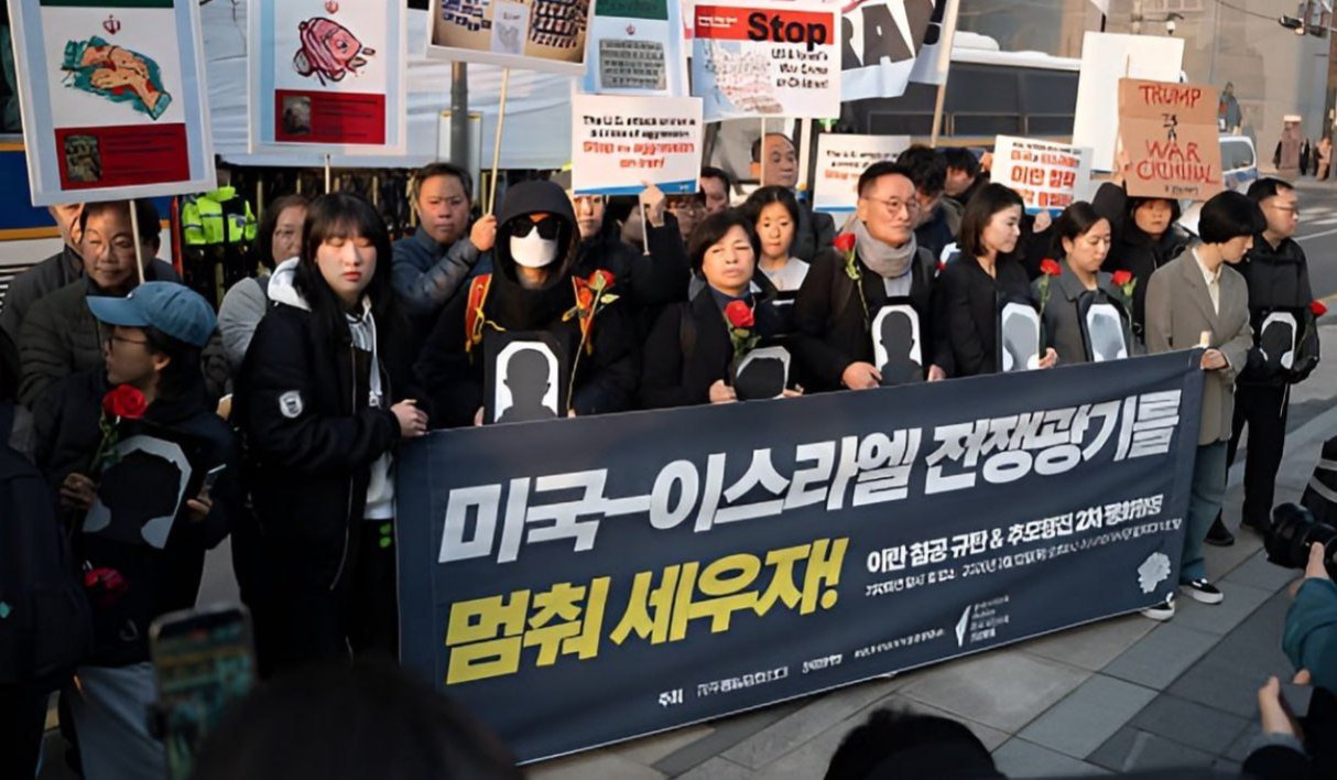 အီရန်နိုင်ငံအပေါ်ဆင်နွှဲနေတဲ့စစ်ပွဲတွေကို ချက်ချင်းရပ်တန့်ဖို့နဲ့တိုက်ခိုက်မှုတွေကြောင့် သေဆုံးသွားရတဲ့ဒေသခံပြည်သူတွေနဲ့ထပ်တူရှိကြောင်း ပြသတဲ့ဆန္ဒပြပွဲတခုကို တောင်ကိုရီးယားနိုင်ငံ၊ ဆိုးလ်မြို့တော်မှာပြုလုပ်ခဲ့ကြတယ်လို့ ဒေသတွင်းမီဒီယာတွေမှာဖော်ပြပါတယ်။