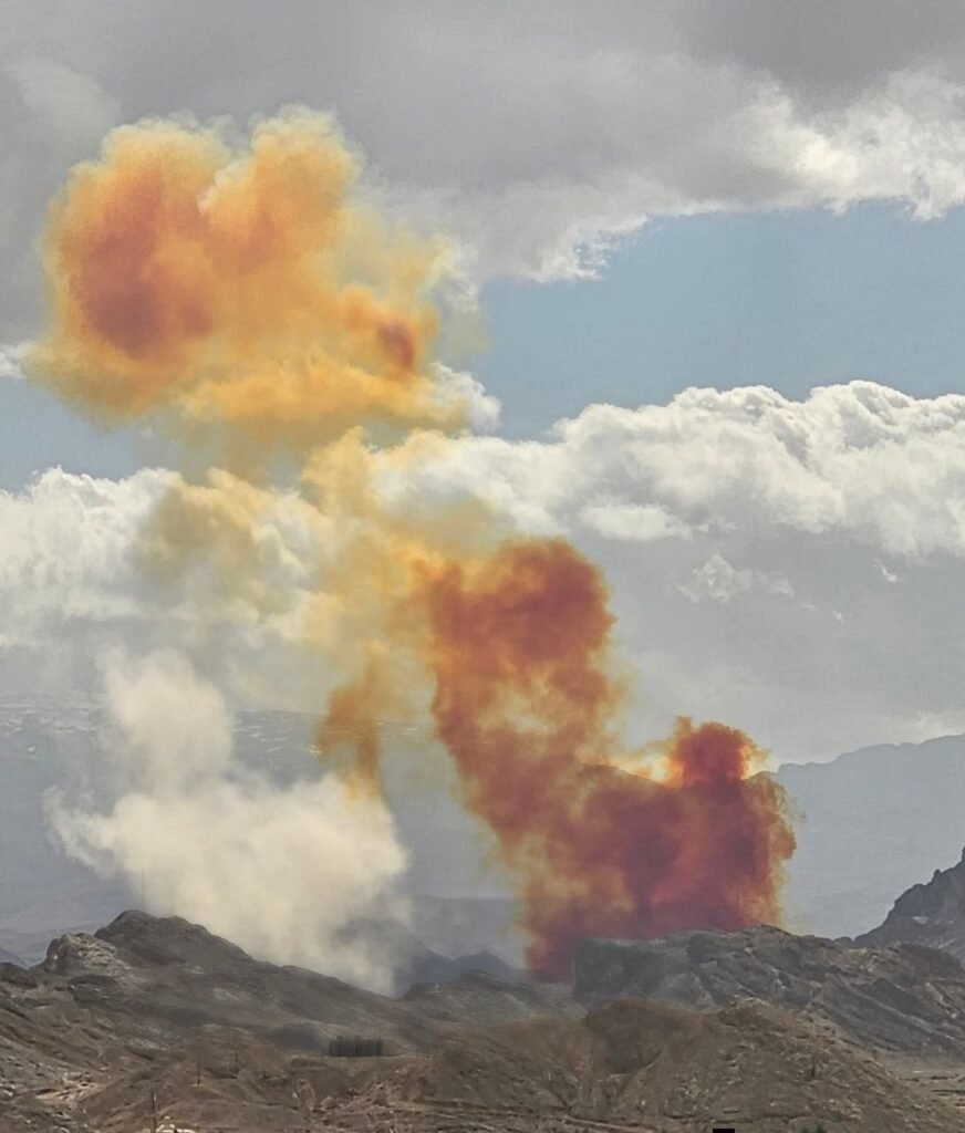 ဒီတိုက်ခိုက်မှုကြောင့် ဒုံးကျည်လောင်စာသိုလှောင်ရုံတွေ ပေါက်ကွဲပြီး ကောင်းကင်ယံမှာ လိမ္မော်ရောင် အဆိပ်ငွေ့တွေ ဖုံးလွှမ်းသွားခဲ့ပါတယ်။