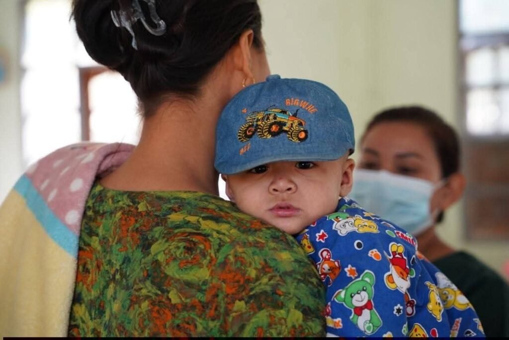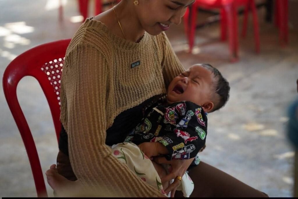 အဲဒီအသက်ငါးနှစ်အောက်ကလေးငယ်တွေကို မတ်လ ၂၃ ရက်နေ့ကအာရက္ခပြည်သူ့ကျန်းမာရေးဌာနမှတတိယအ ကြိမ်ကာကွယ်ဆေးထိုးပေးခဲ့တာပါ။