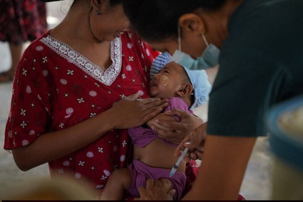 အာရက္ခတပ်တော်ထိန်းချုပ်နယ်မြေတွေရှိကလေးငယ်တွေကိုထိုးပေးနေတာဖြစ်သလိုစစ်ဘေးရှောင်ကလေးတွေကိုလည်း ကာကွယ်ဆေးထိုးပေးနေပါ။
