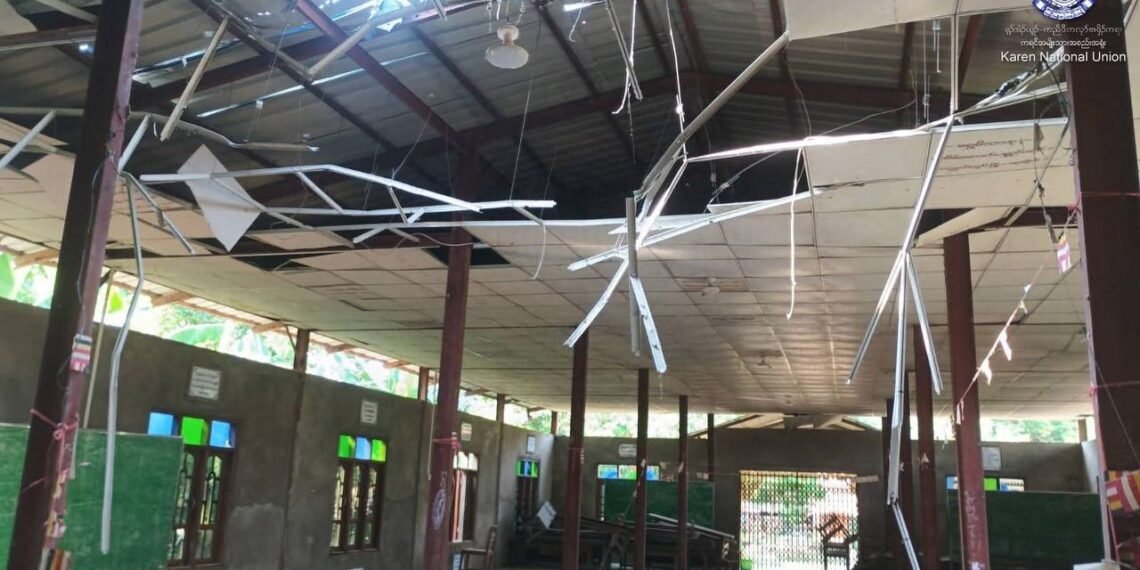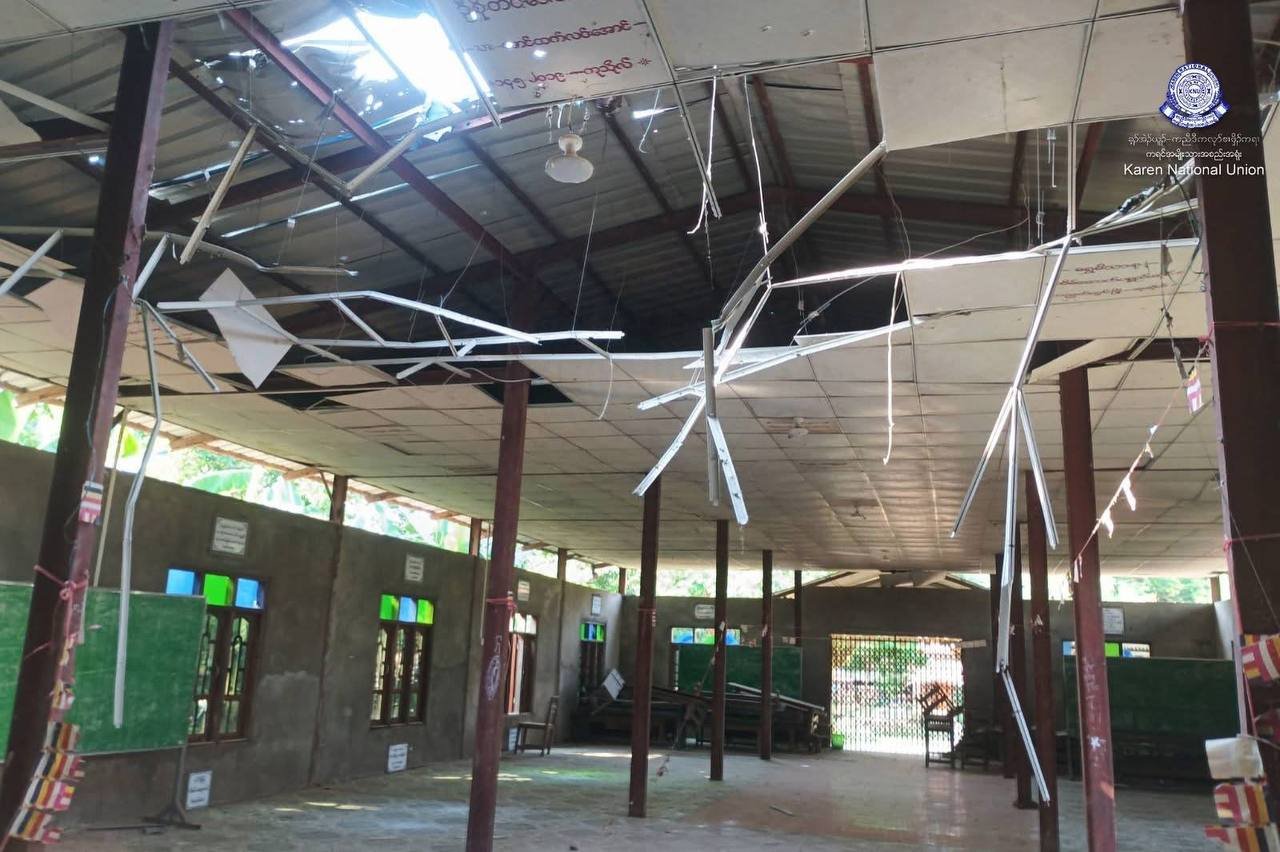 ပဲခူးတိုင်း၊မူးမြို့နယ်မှာ စစ်ကော်မရှင်တပ်ဒရုန်းနဲ့ ပစ်ခတ်တိုက်ခိုက်ခဲ့တာကြောင့် ဘန်းကြီးကျောင်းတကျောင်းပျက်စီးသွားတယ်လို့ KNUမှ မတ်လ ၂၅ ရက်နေ့က ထုတ်ပြန်ပါတယ်။