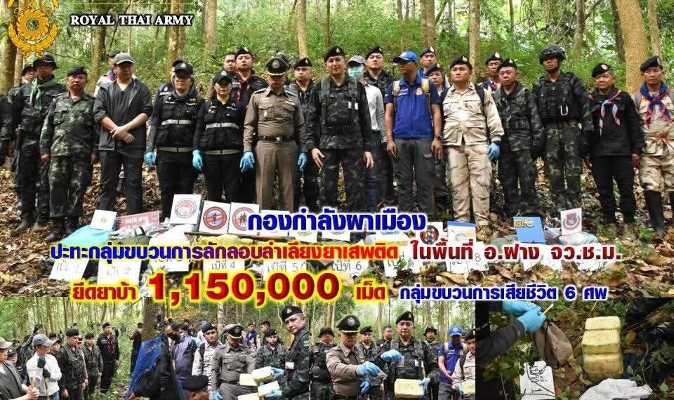 ထိုင်းနိုင်ငံ၊ချင်းမိုင်ခရိုင် ဖန်မြို့နယ်အတွင်းမှာ ထိုင်းနယ်စပ်လုံခြုံရေးတပ်ဖွဲ့နဲ့ မူးယစ်ဆေးဝါးမှောင်ခိုအဖွဲ့တို့ တိုက်ပွဲဖြစ်ပွားခဲ့ပြီး စိတ်ကြွဆေးပြား ၁ သန်းကျော်သိမ်းဆည်းရမိခဲ့တယ်လို့ ထိုင်းဘုရင့်တပ်တော်က ဧပြီလ ၁ ရက်၊ ဒီနေ့ထုတ်ပြန်ပါတယ်။