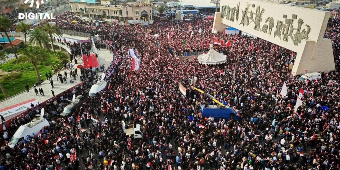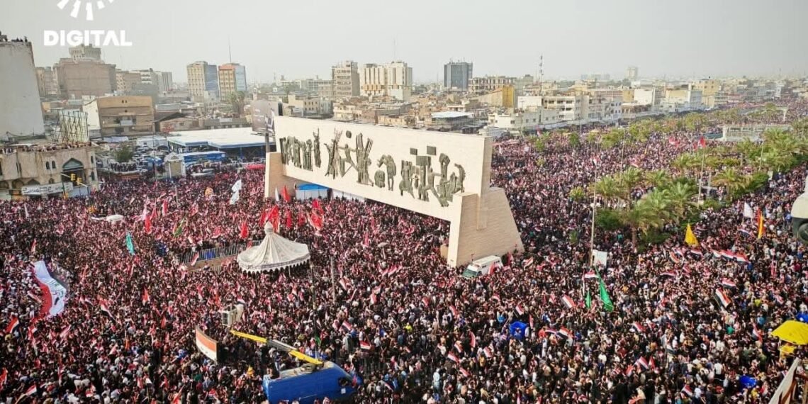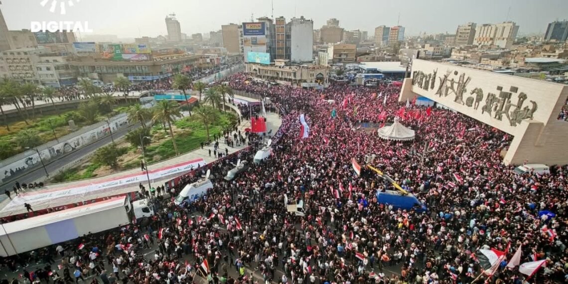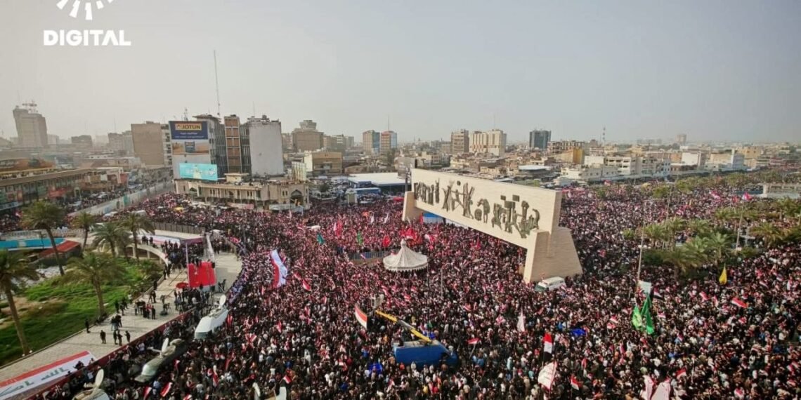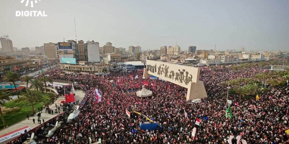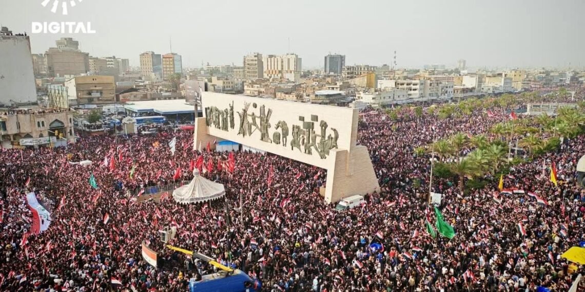 အီရတ်နိုင်ငံ၊ မြို့တော်ဘဂ္ဂဒက်မှာ ဆဒ်ဒရစ်လှုပ်ရှားမှုနဲ့ ရှီအိုက်ဘာသာဝင်ထောက်ခံသူသောင်းနဲ့ချီဟာ အမေရိကန်နဲ့အစ္စရေးတို့ရဲ့ အီရန်အပေါ် တိုက်ခိုက်မှုကို ဆန့်ကျင်ကြောင်း ဧပြီလ ၄ ရက်နေ့မှာ ဆန္ဒပြခဲ့ကြပါတယ်။