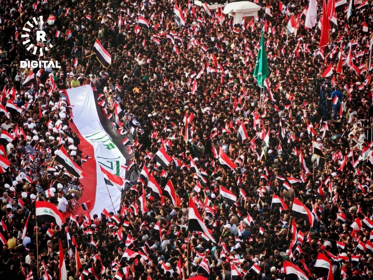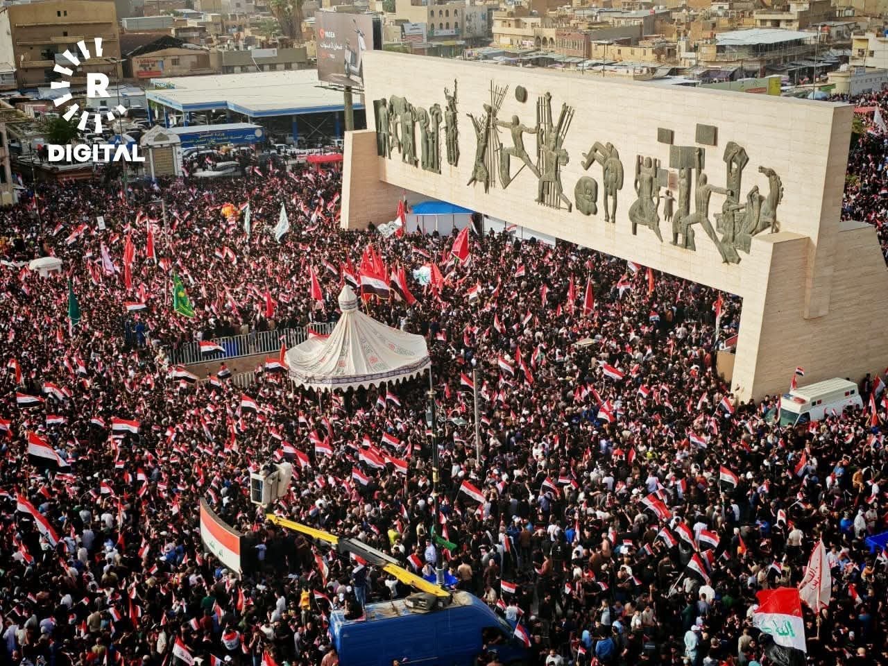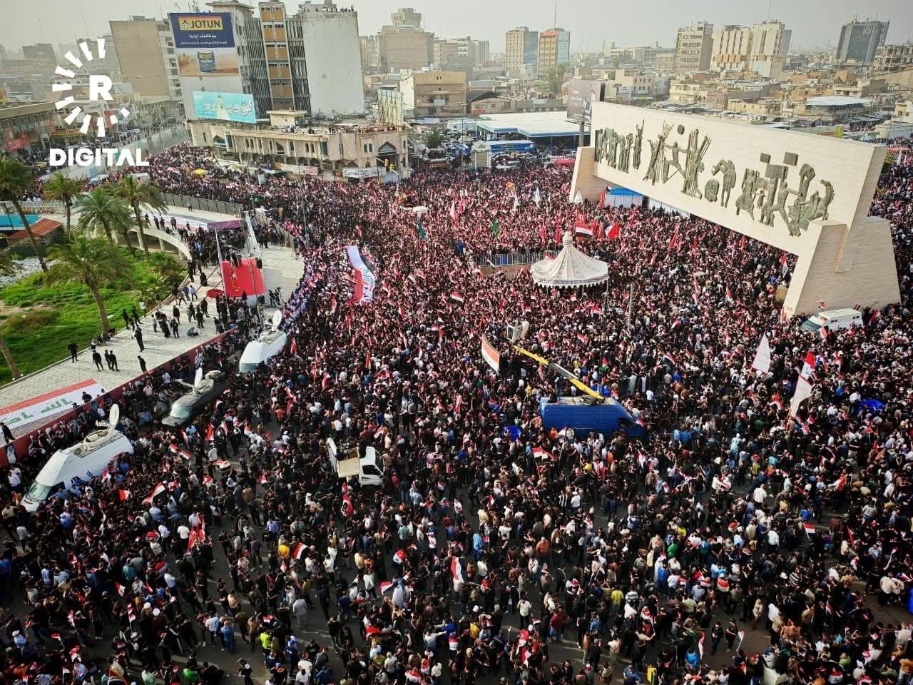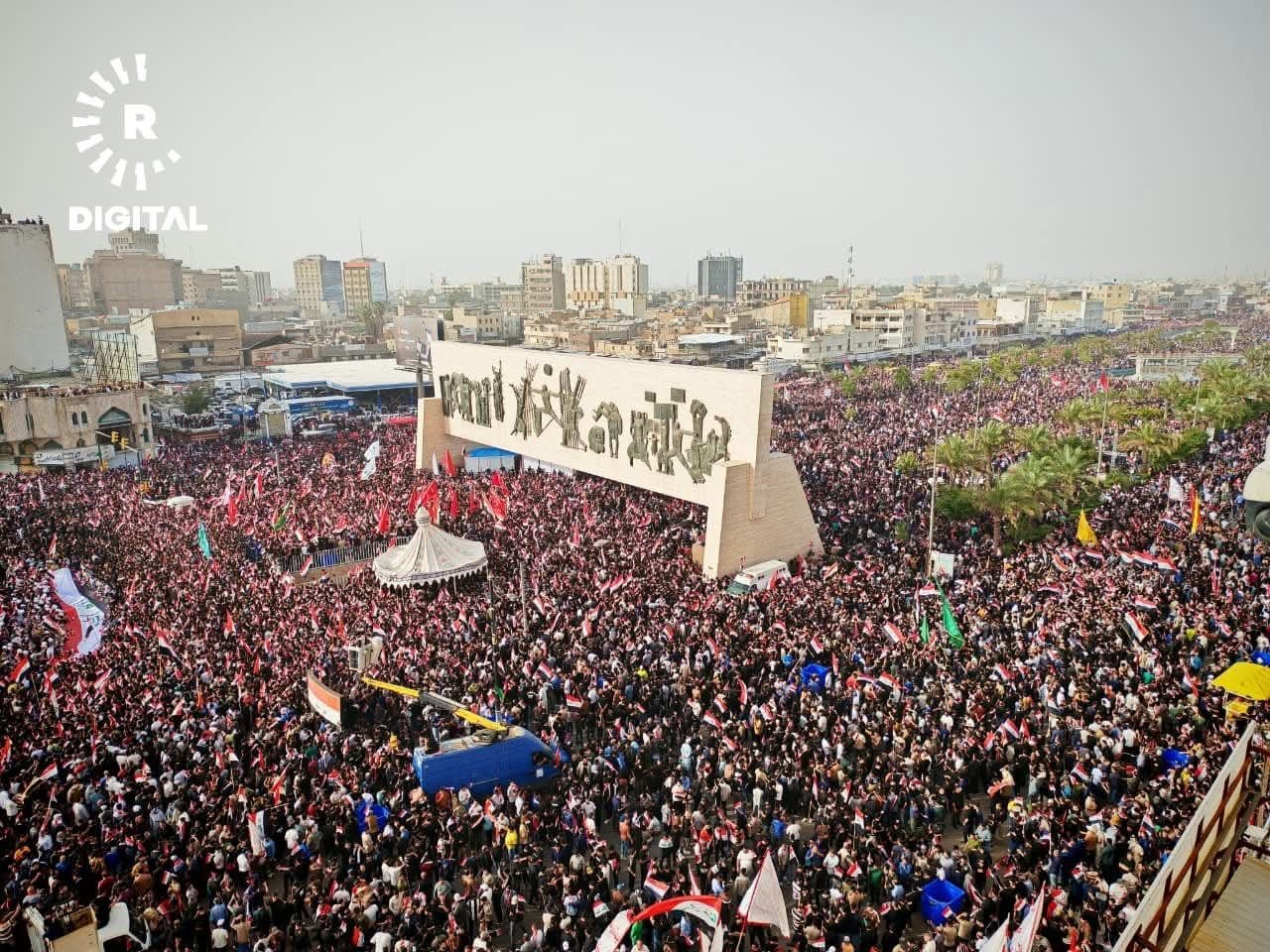 အီရတ်နိုင်ငံ၊ မြို့တော်ဘဂ္ဂဒက်မှာ ဆဒ်ဒရစ်လှုပ်ရှားမှုနဲ့ ရှီအိုက်ဘာသာဝင်ထောက်ခံသူသောင်းနဲ့ချီဟာ အမေရိကန်နဲ့အစ္စရေးတို့ရဲ့ အီရန်အပေါ် တိုက်ခိုက်မှုကို ဆန့်ကျင်ကြောင်း ဧပြီလ ၄ ရက်နေ့မှာ ဆန္ဒပြခဲ့ကြပါတယ်။
