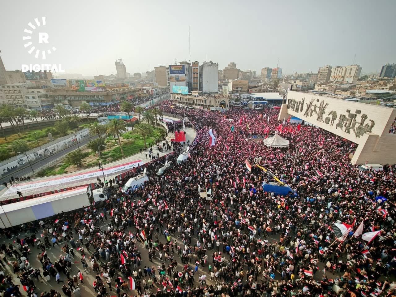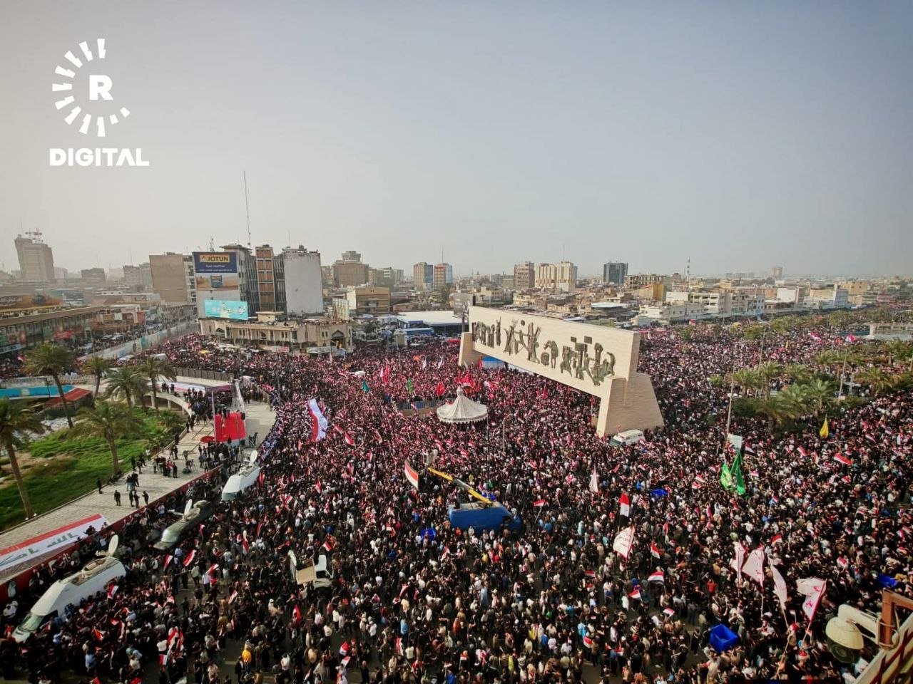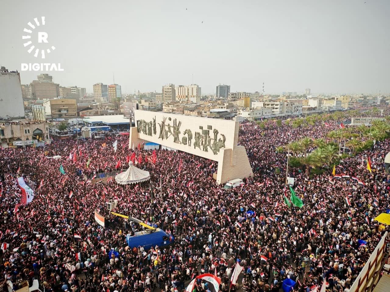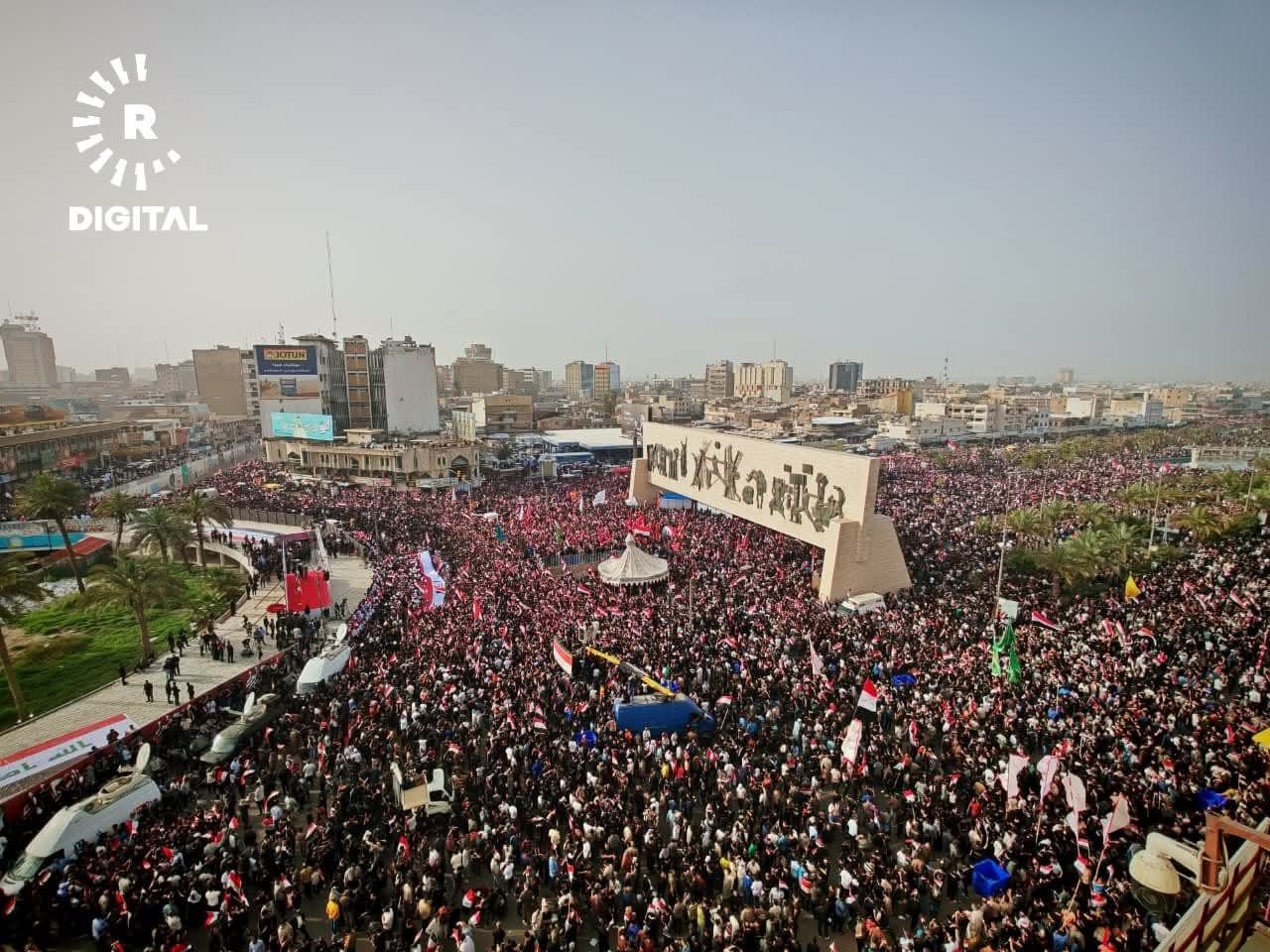 အီရတ်နိုင်ငံ၊ မြို့တော်ဘဂ္ဂဒက်မှာ ဆဒ်ဒရစ်လှုပ်ရှားမှုနဲ့ ရှီအိုက်ဘာသာဝင်ထောက်ခံသူသောင်းနဲ့ချီဟာ အမေရိကန်နဲ့အစ္စရေးတို့ရဲ့ အီရန်အပေါ် တိုက်ခိုက်မှုကို ဆန့်ကျင်ကြောင်း ဧပြီလ ၄ ရက်နေ့မှာ ဆန္ဒပြခဲ့ကြပါတယ်။