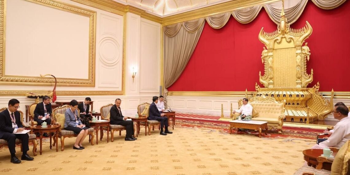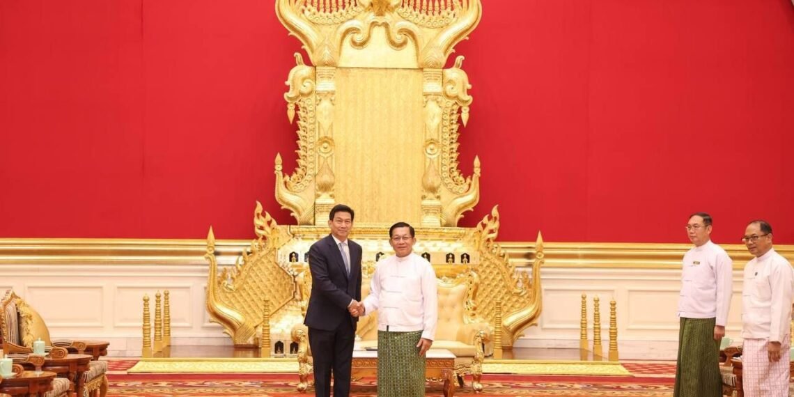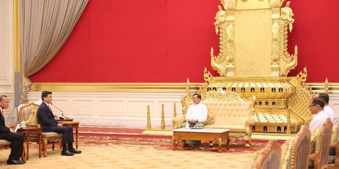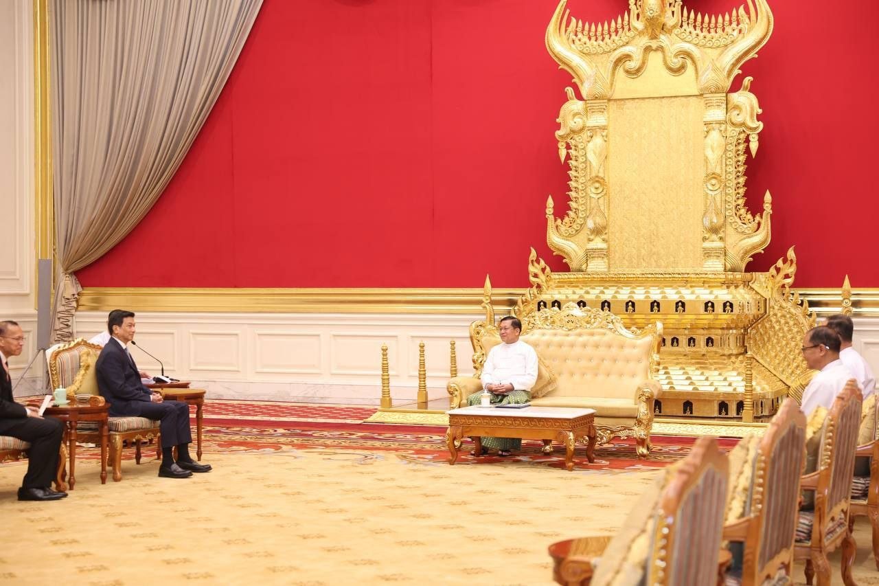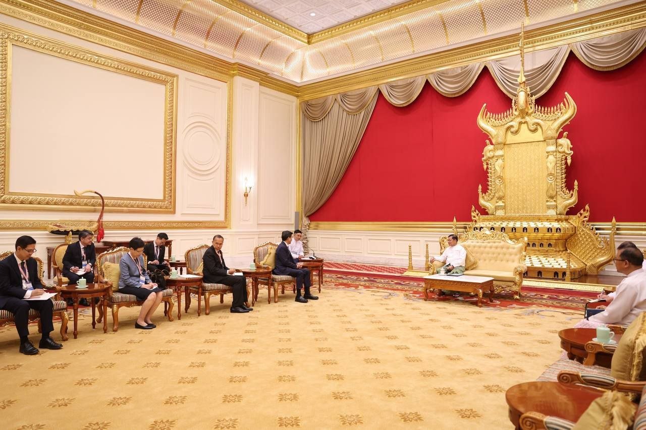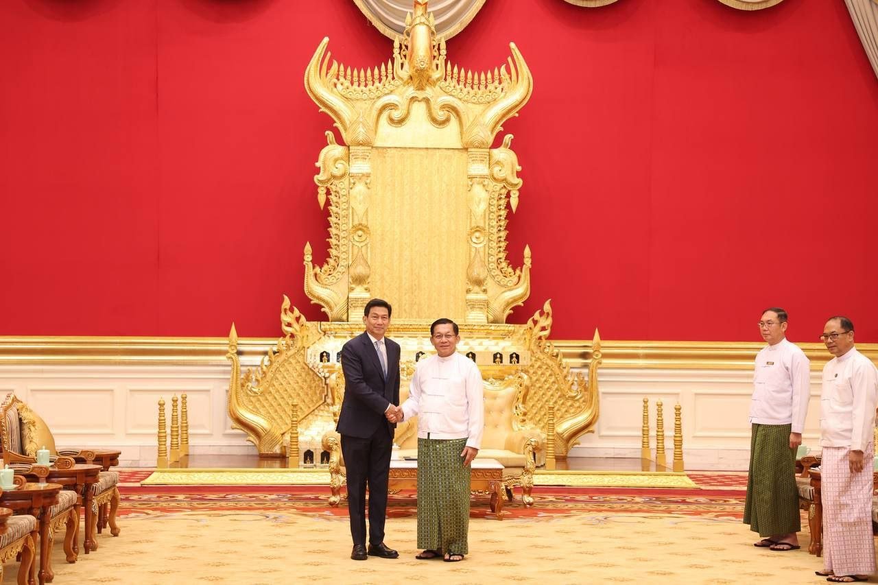 ​ထိုင်းကိုယ်စားလှယ်အဖွဲ့ဟာ စစ်ကော်မရှင်အတုအယောင်အစိုးရသမ္မတအဖြစ် ကျမ်းသစ္စာကျိန်ဆိုပွဲအခမ်းအနားကို တက်ရောက်ဖို့ရောက်ရှိနေတာလည်းဖြစ်ပါတယ်။