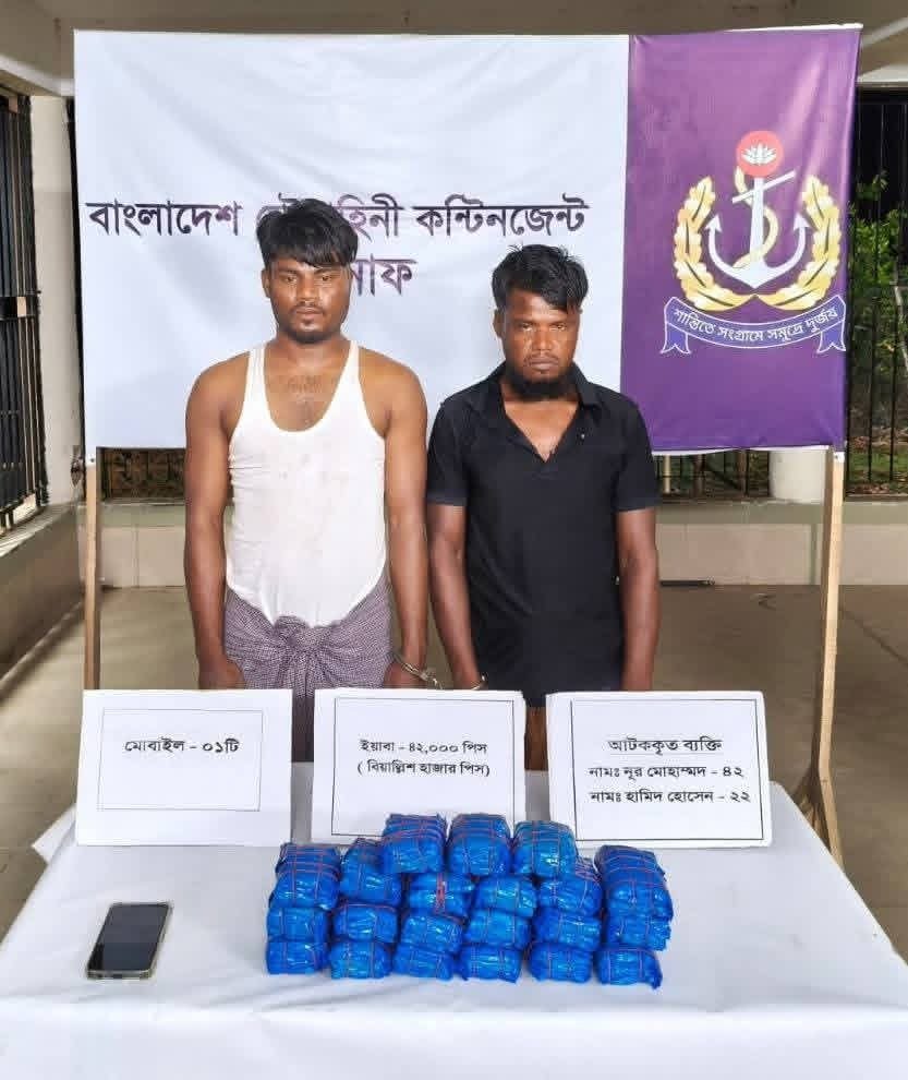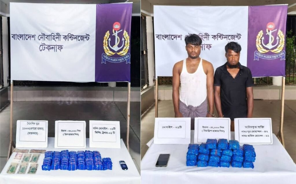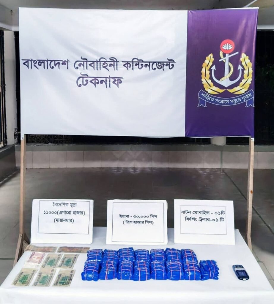 ဘင်္ဂလားဒေ့ရှ်နိုင်ငံ၊ တက်ကနာ့ဖ်မြို့နယ်ထဲမှာ ရေတပ်ကမူးယစ်ဆေးဝါး ရှာဖွေမှုနှစ်ခု လုပ်ခဲ့ရာမှာ စိတ်ကြွဆေးပြား ၇၂,၀၀၀ ကျော်၊မြန်မာကျပ်ငွေ ၁၁,၀၀၀ နဲ့အတူ လူ ၂ ဦးကို ဖမ်းမိခဲ့ပါတယ်။