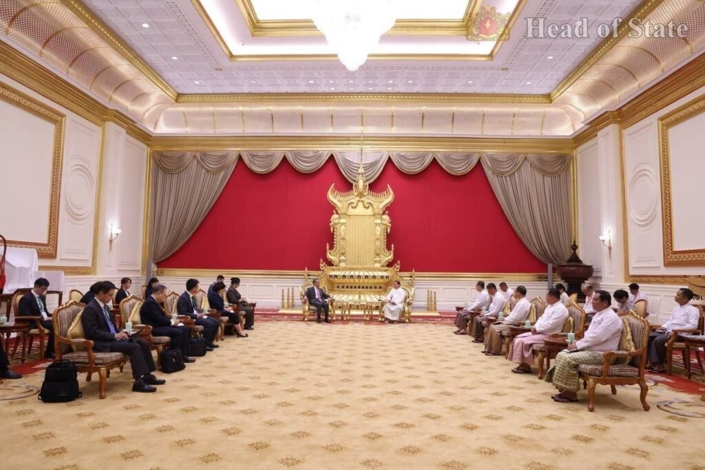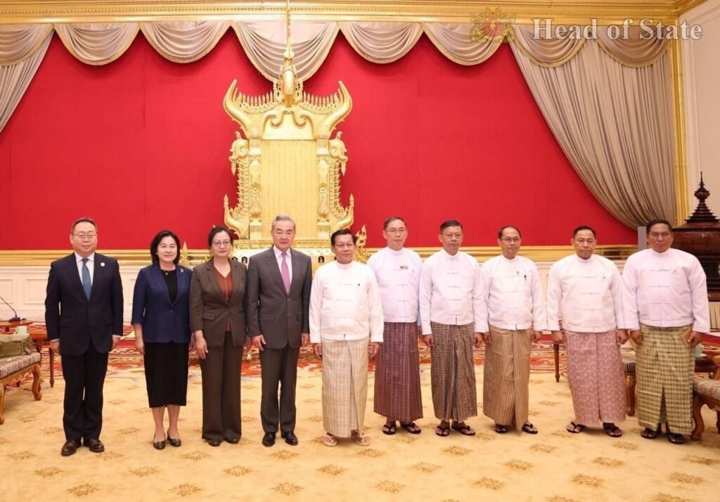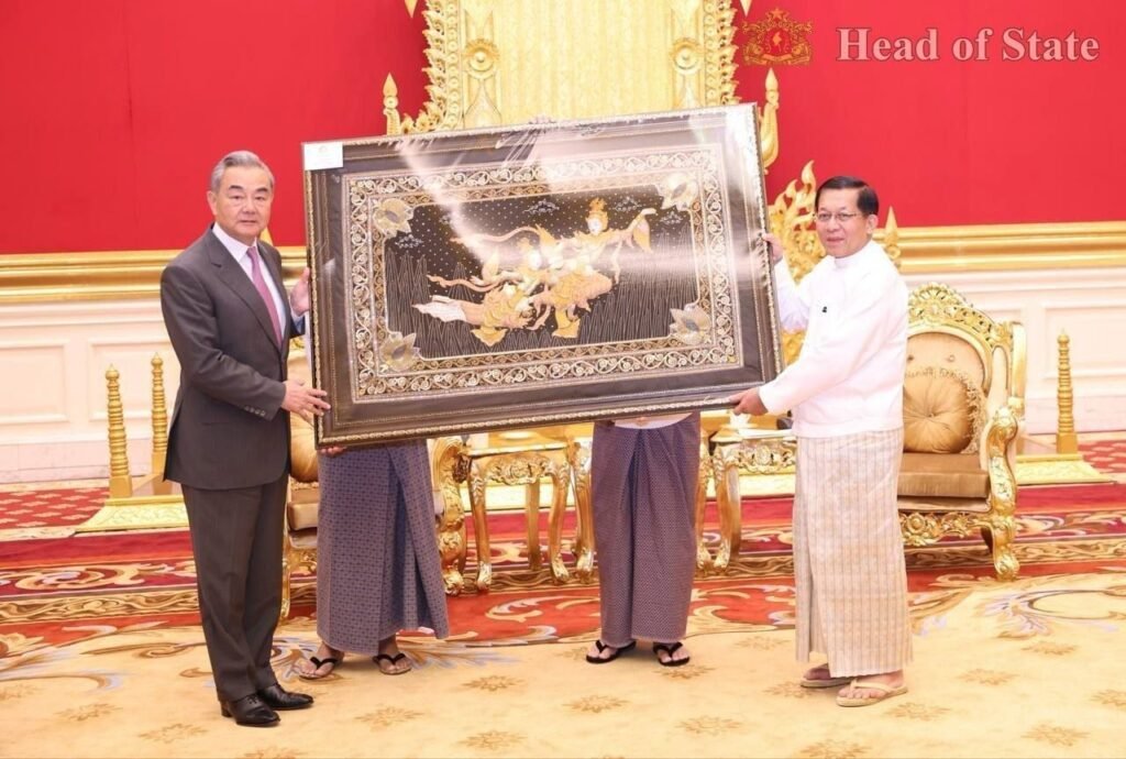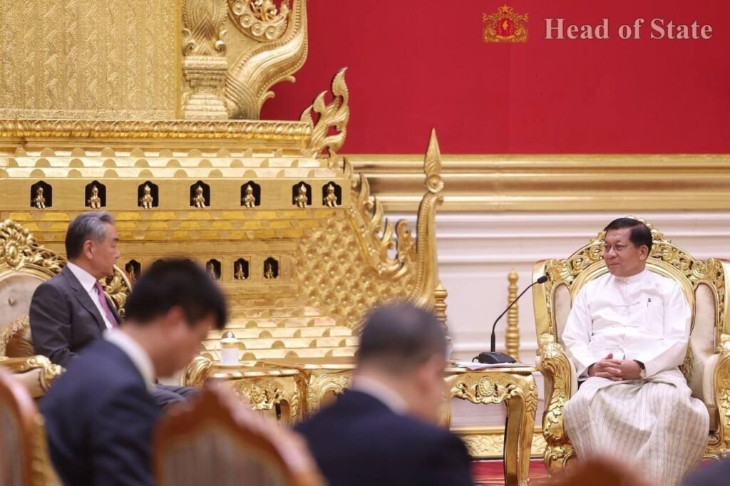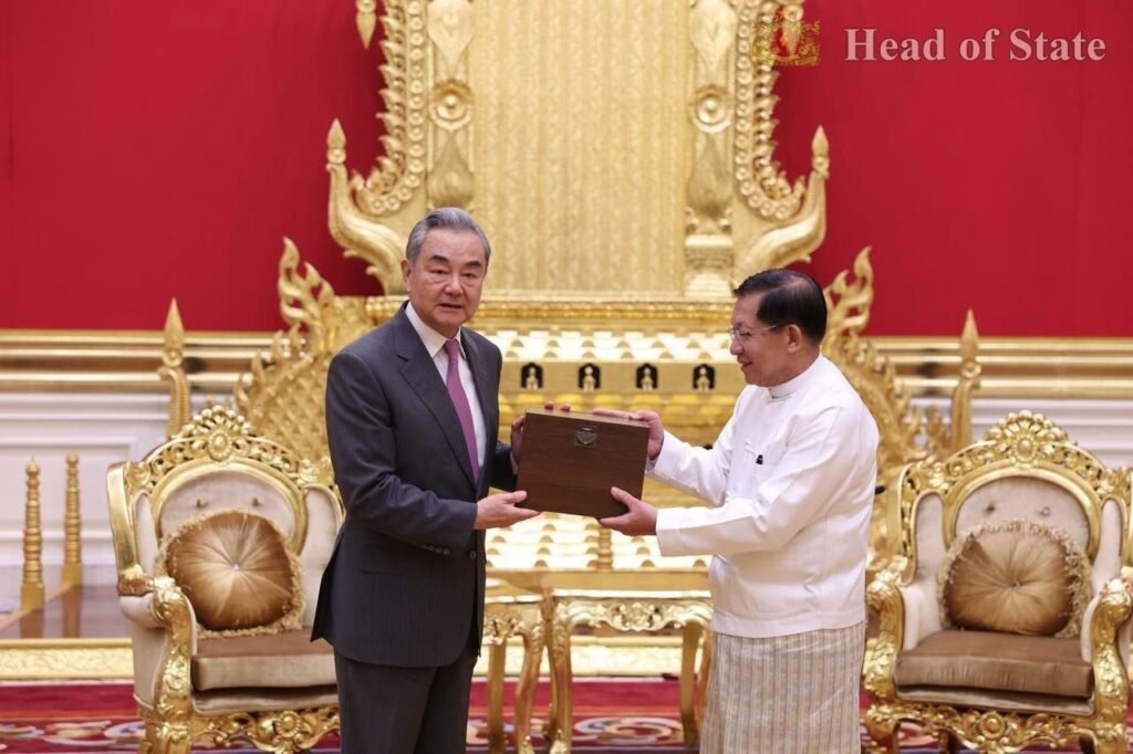 တရုတ်နိုင်ငံခြားရေးဝန်ကြီးဝမ်ယိနဲ့ အာဏာသိမ်းစစ်ခေါင်းဆောင်မင်းအောင်လှိုင်ဟာ ဧပြီလ ၂၅ ရက်၊ ဒီနေ့နေပြည်တော်မှာတွေ့ပါတယ်။