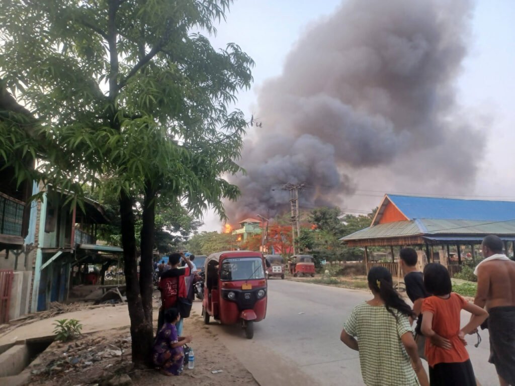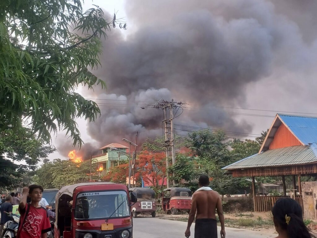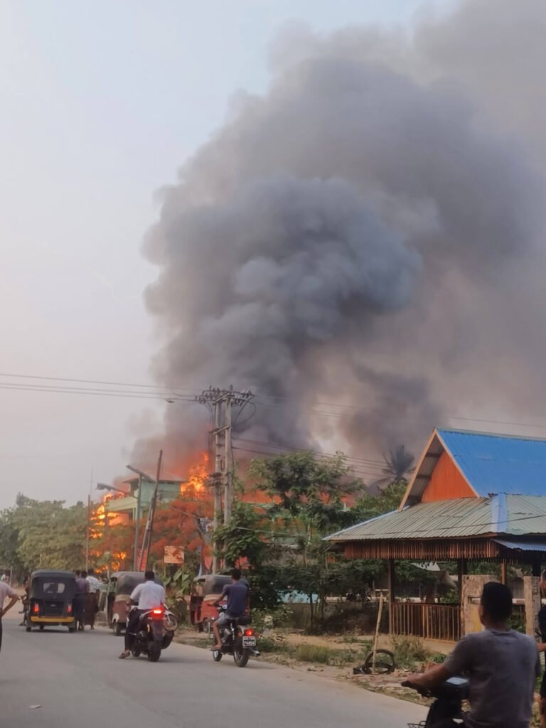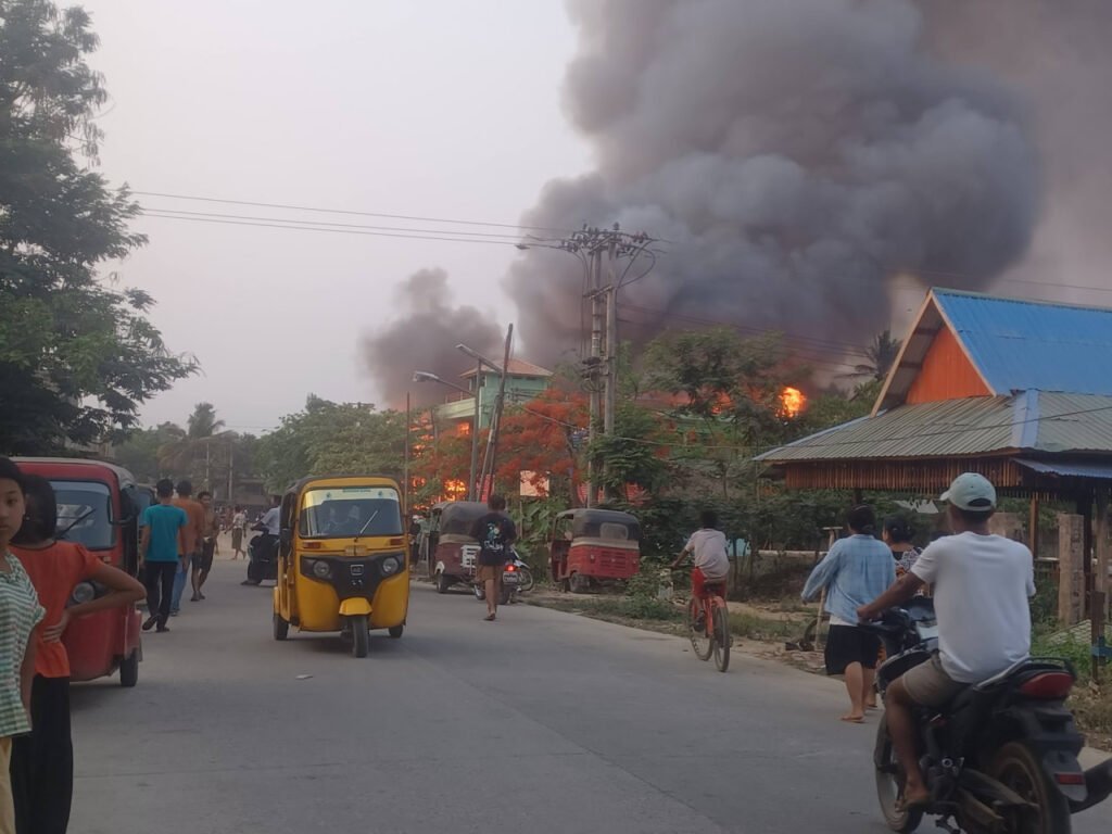 အဲဒီမီးလောင်မှုဟာ နေအိမ်တွေဆီ ကူးစက်လောင်ကျွမ်းနေလို့ဒေသခံတွေဝိုင်းဝန်းသတ်နေကြပေမယ့် မီးတောက်အရှိန်ပြင်းနေပါတယ်။