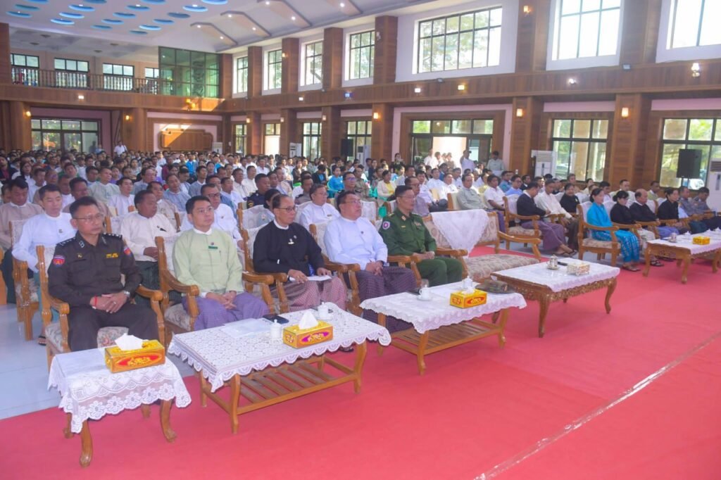 အဲဒီခိုင်သဇင်ခန်းမမှာ စစ်ကောင်စီရဲ့ရခိုင်ပြည်နယ်ဝန်ကြီးချုပ်ဦးထိန်လင်းနဲ့ဇနီးပြည်နယ်အမျိုးသမီးရေးရာအဖွဲ့နာယကဒေါ်ဆွေဆွေမြတ်၊ ပြည်နယ်တ ရားလွှတ်တော်တရားသူကြီးချုပ်၊ ပြည်နယ်အစိုးရအဖွဲ့ဝင်တွေ၊ ဌာနဆိုင်ရာတွေနဲ့ စစ်ဘေးရှောင်တွေ တက်ရောက်ခဲ့တယ်လို့ ဆိုပါတယ်။