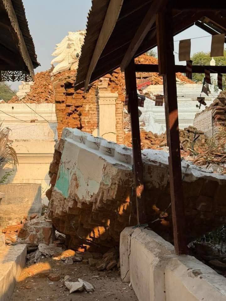 ငလျင်ကြောင့် အမရပူရရှိ ရှေးဟောင်းနဂါးရုံဘုရားပြိုကျပျက်စီး