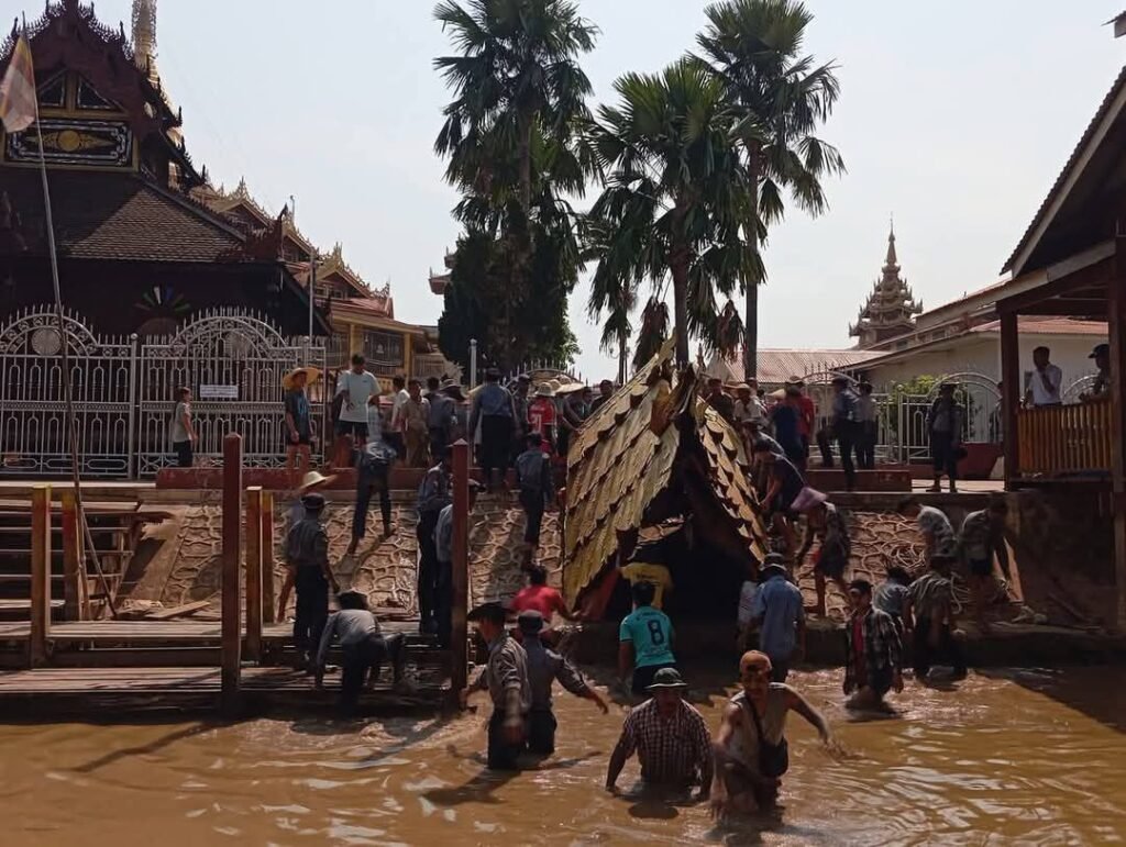 မြန်မာနိုင်ငံမှာ မတ်လ ၂၈ ရက်နေ့ကအင်အား ၇ ဒသမ ၇ အဆင့်ရှိအင်အားအလွန်ပြင်းထန်တဲ့ ငလျင်ကြီးလှုပ်ခတ်ခဲ့ပြီးနောက် ရှမ်းပြည်၊အင်းလေးဒေသရှိ ရွှေရောင်ကရဝိတ်ဖောင်တော်ကြီးလ ည်း ငလျင်ကြောင့် ပျက်စီးသွားခဲ့ပါတယ်။