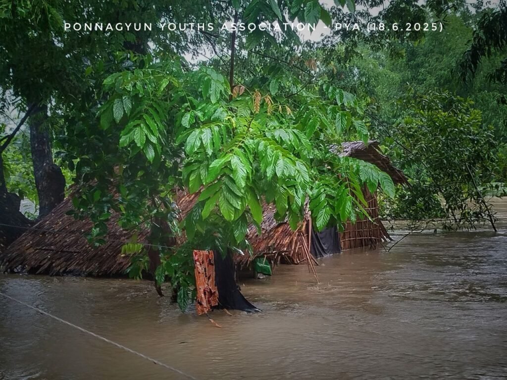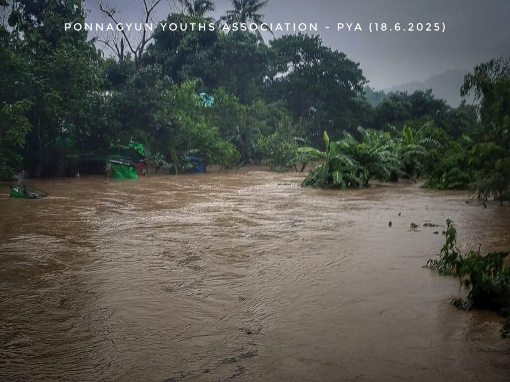 ကုလားတန်မြစ်ရေတိုးလာပြီး မြေနိမ့်ပိုင်းနေရာတွေ၊ ကားလမ်းတွေ၊ ကျေးရွာတွေ၊ စစ်ဘေးရှောင်စခန်းတွေ ရေနစ်နေပါတယ်။