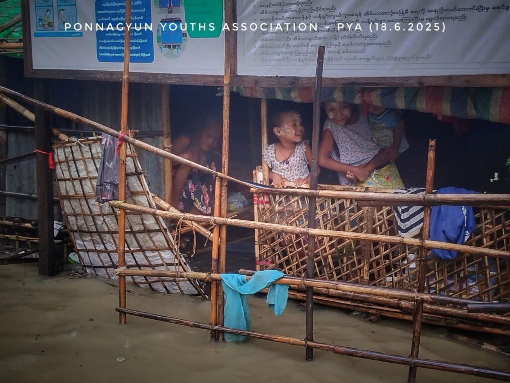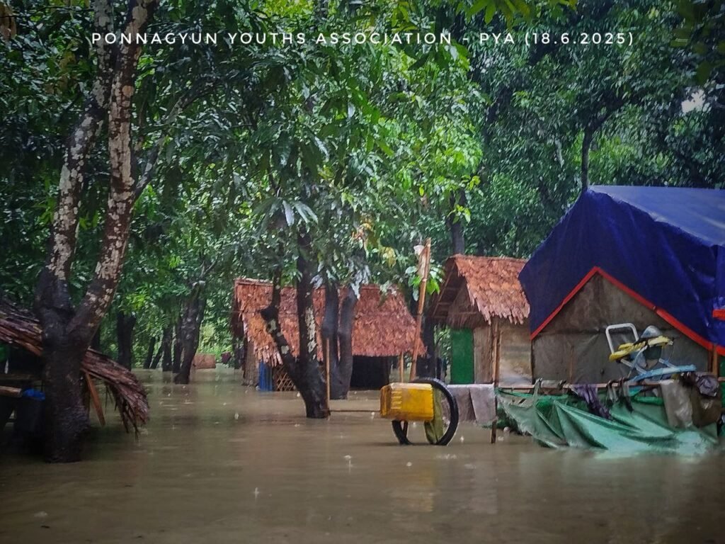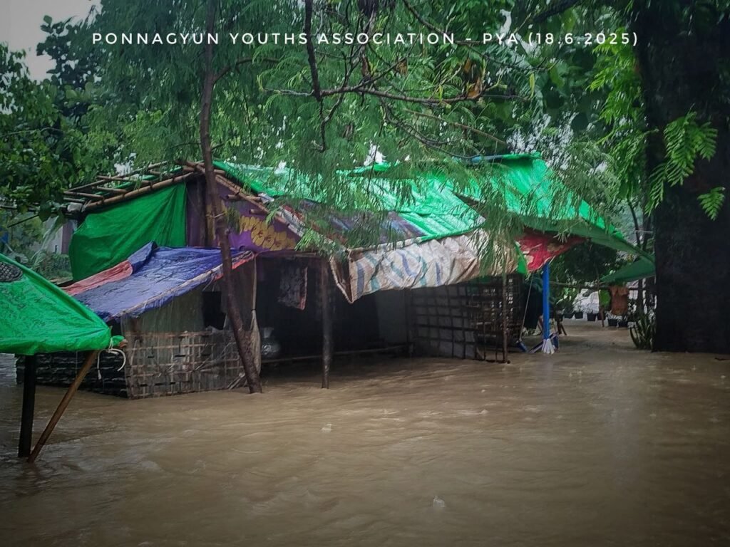 အာရက္ခဒေသမှာ မိုးအဆက်မပြတ်ရွာသွန်းနေပြီး ရေကြီးနေတာမို့ ပုဏ္ဏားကျွန်းမြို့နယ်က စစ်ဘေးရှောင်အိမ်ထောင်စုနှစ်ရာကျော် အရေးပေါ် အကူအညီတွေ လိုအပ်နေကြပါတယ်။