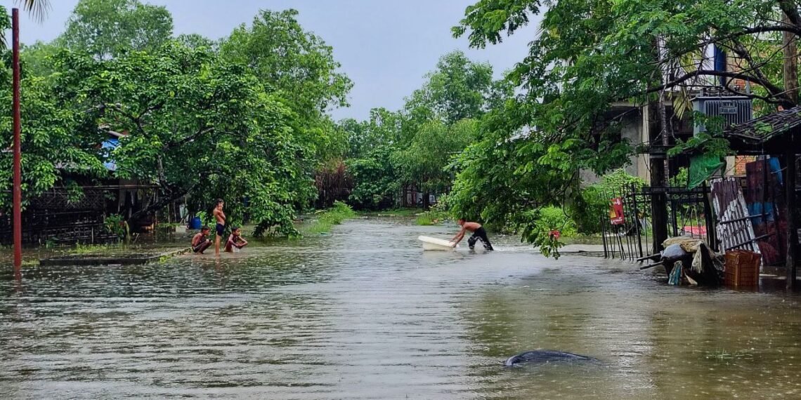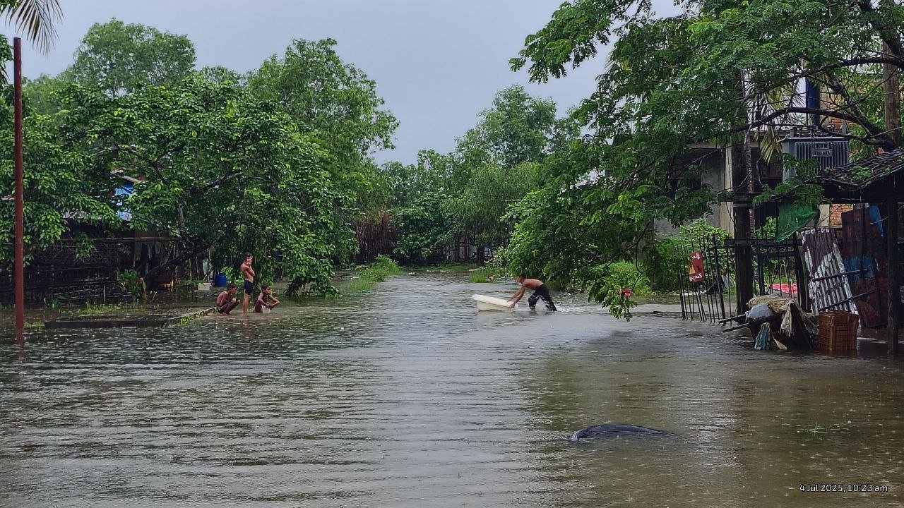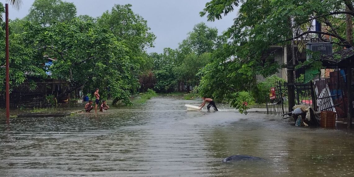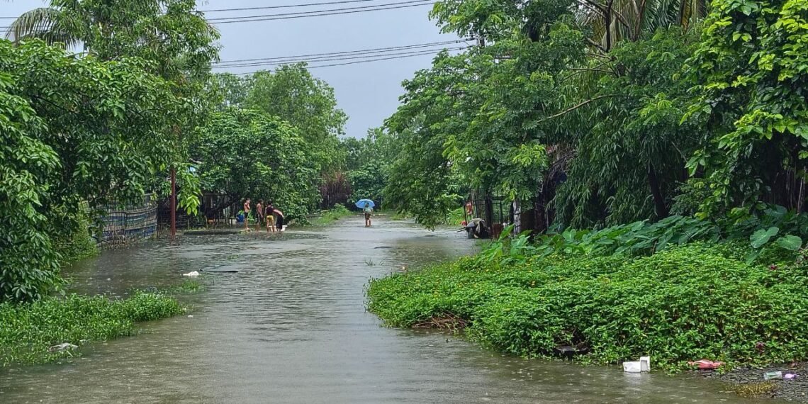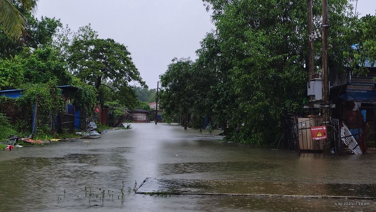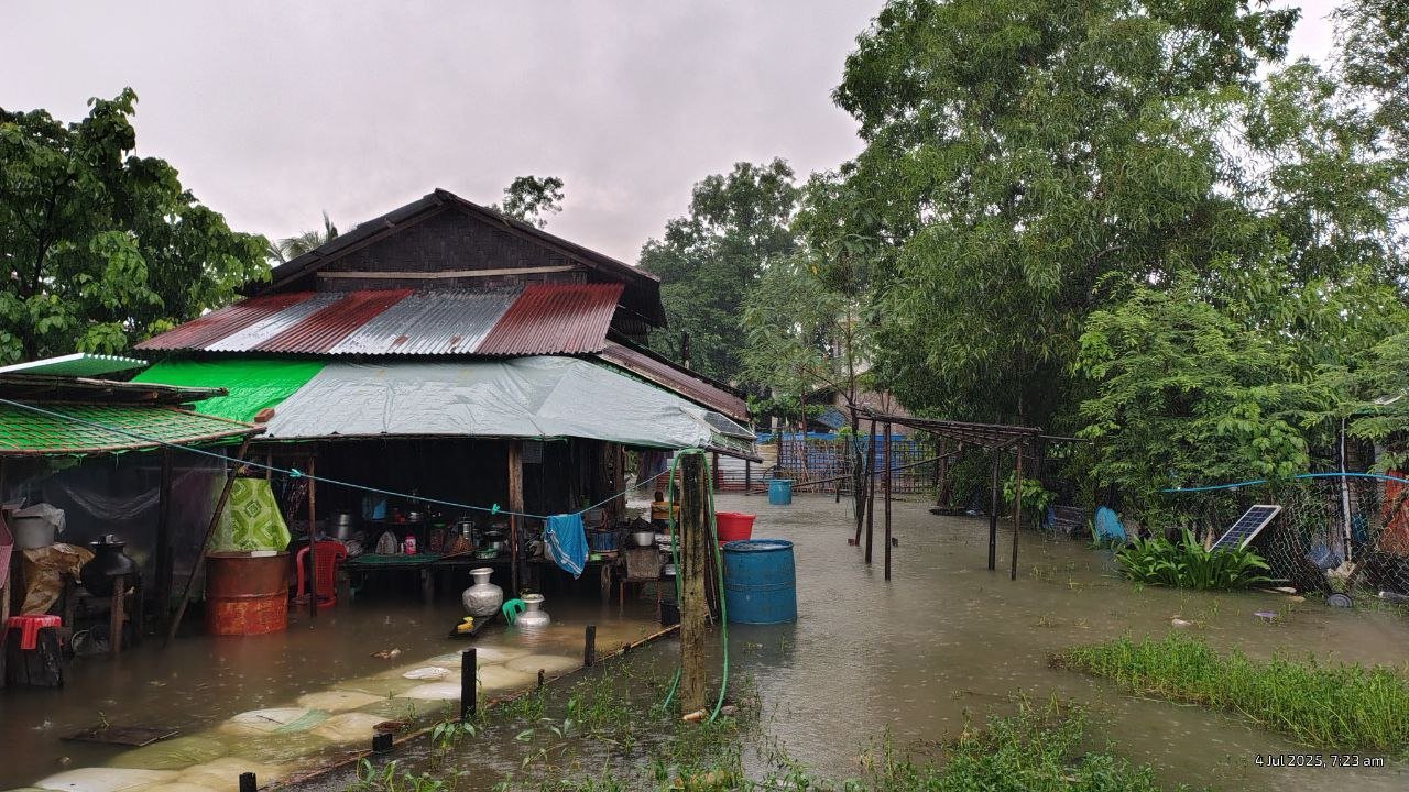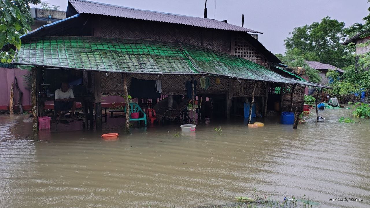 မောင်တောမြို့မှာ မိုးသည်းထန်စွာရွာ သွန်းနေတာမို့ ဇူလိုင်လ ၄ ရက်၊ မနေ့ကစတင်ပြီး ရပ်ကွက်တချို့ ရေကြီးနေပါတယ်။