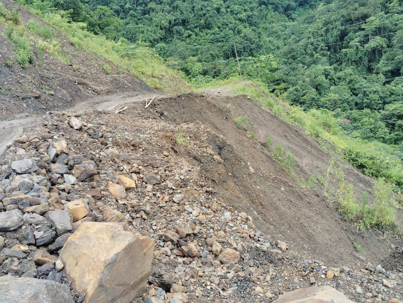 မိုးသည်းထန်စွာရွာသွန်းလို့ တောင်ကျ ချောင်းရေတွေကြောင့် လမ်းမကြီးတွေပျက်စီးနေတာကို ပြုပြင်ထိန်းသိမ်းနေတယ်လို့ ဆိုပါတယ်။