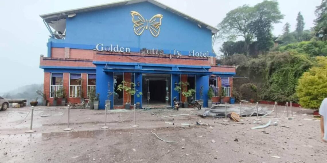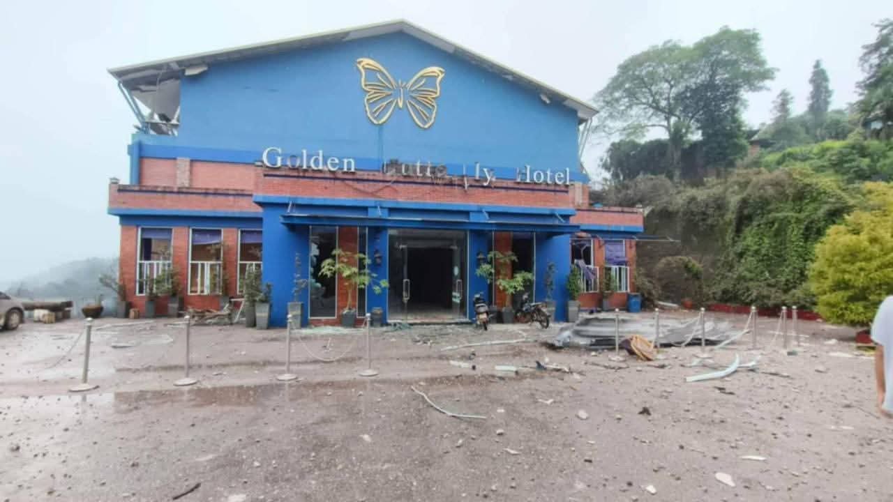 တအာင်းတပ်မတော်ထိန်းချုပ်ထားတဲ့မိုးကုတ်မြို့ရှိ ရွှေလိပ်ပြာဟိုတယ်ကို ဇူလိုင်လ ၂၆ ရက်၊ဒီနေ့ညနေက စစ်ကောင်စီတပ်လေကြောင်းတိုက်ခိုက်လို့တဦးသေပြီးငါးဦးဒဏ်ရာရသွားပါတယ်။