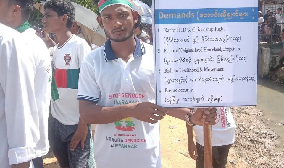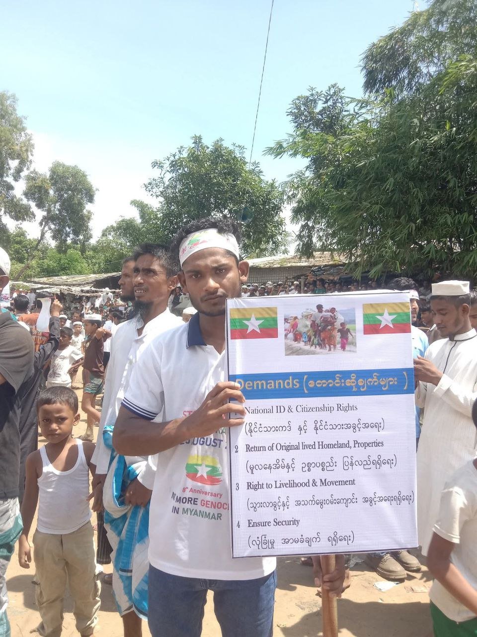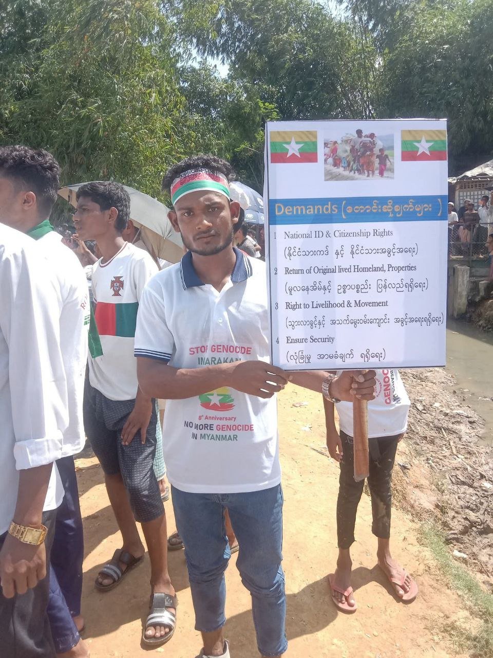 အဲဒီဘင်္ဂလားဒေ့ရှ်နိုင်ငံ၊ဒုက္ခသည်စခန်းတွေရှိ ရိုဟင်ဂျာတွေဟာ လူမျိုးတုန်းသ တ်ဖြတ်ခံရမှုအထိမ်းအမှတ်အောက်မေ့ဖွယ်နေ့အခမ်းအနားမှာ ခုလိုတောင်းဆိုနေကြတာဖြစ်ပါတယ်။