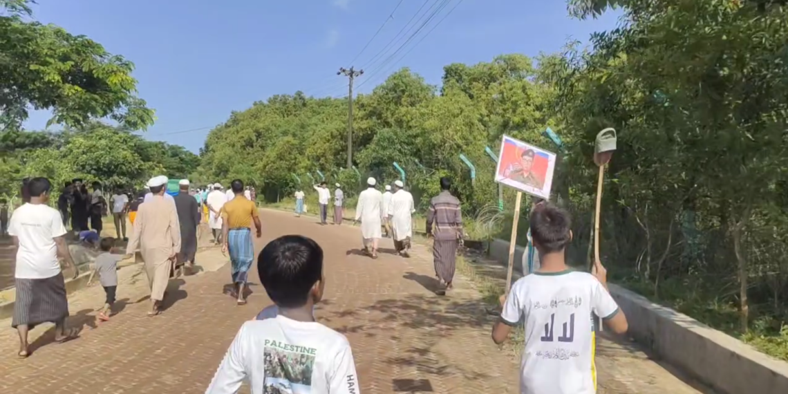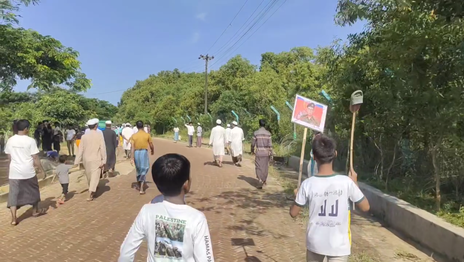 အဲဒီဘင်္ဂလားဒေ့ရှ်နိုင်ငံ၊ ဒုက္ခသည်စခန်းတွေရှိရိုဟင်ဂျာတွေအပါအဝင်ကလေးငယ်တချို့ဟာ အာရက္ခတပ်တော်၊ တပ်မှူးချုပ်၊ ဗိုလ်ချုပ်ထွန်းမြတ်နိုင်ပုံကို ဖိနပ်တွေနဲ့ရိုက်သတ်ဆန္ဒပြတာတွေထိပြုလုပ်နေကြတာပါ။