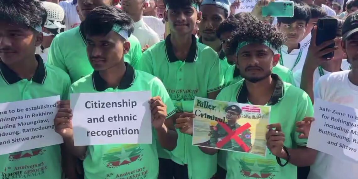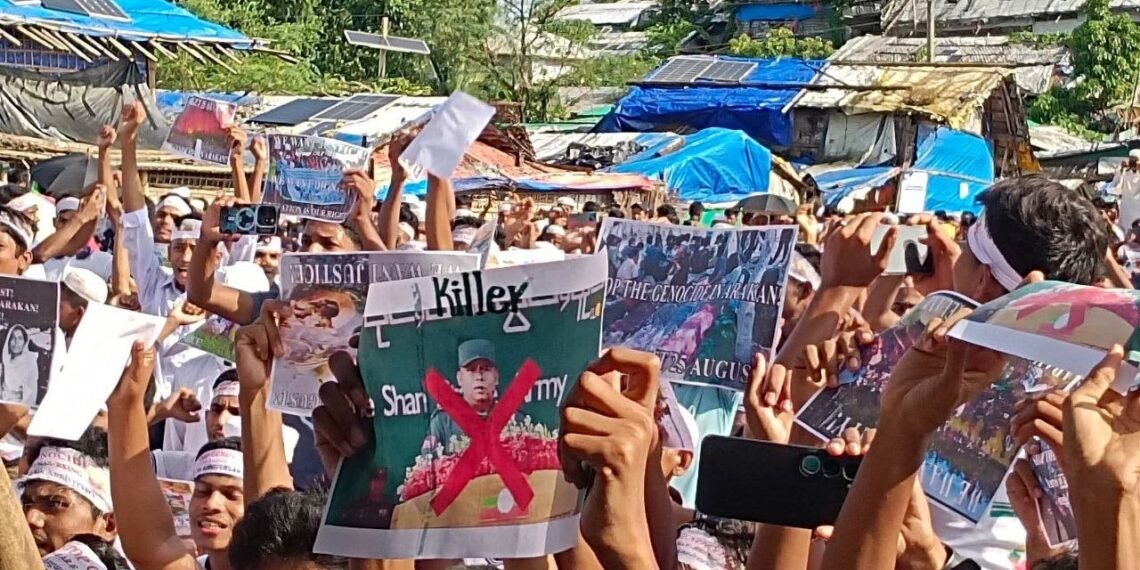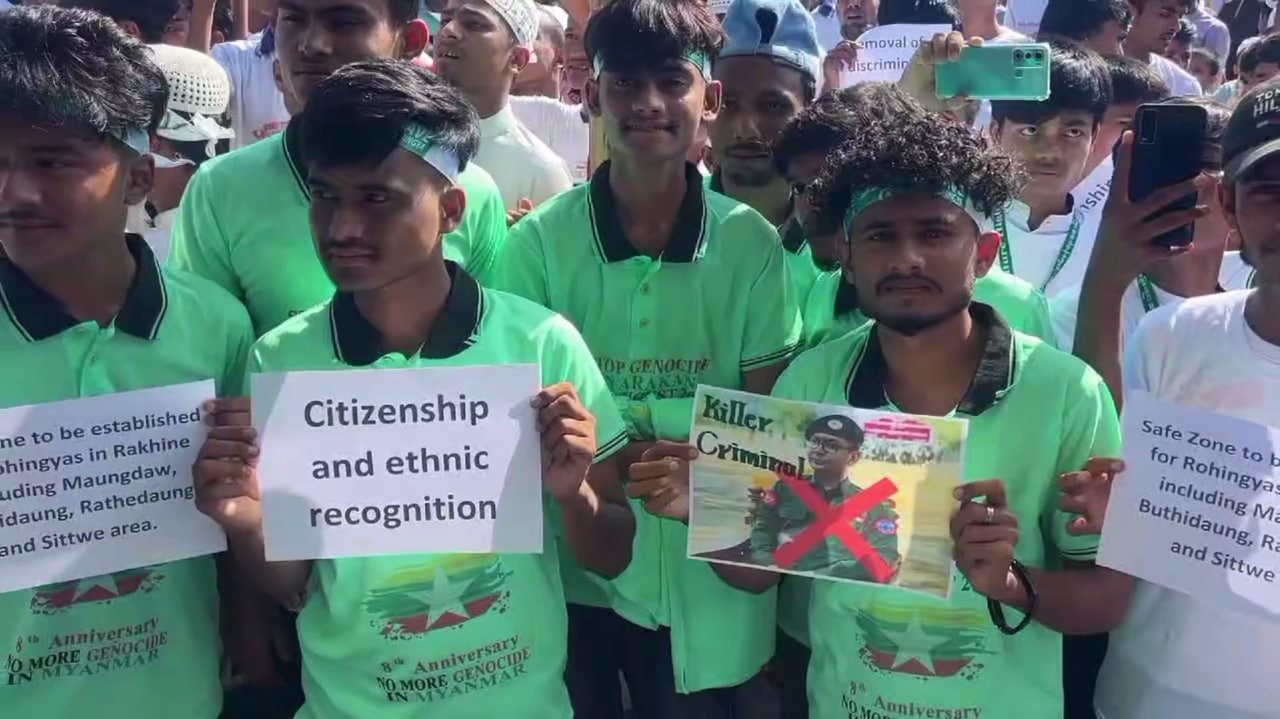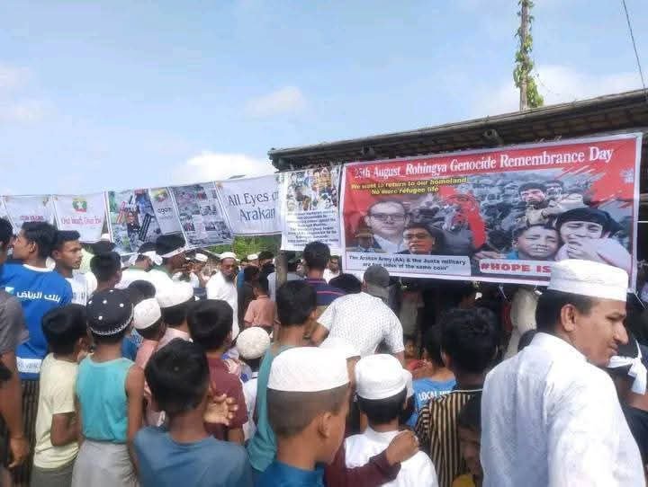 အဲဒီဘင်္ဂလားဒေ့ရှ်နိုင်ငံ၊ ဒုက္ခသည်စခန်းတွေရှိ ရိုဟင်ဂျာတွေဟာ လူမျိုးတုန်းသ တ်ဖြတ်ခံရမှုအထိမ်းအမှတ်အောက်မေ့ဖွယ်နေ့အခမ်းအနားမှာ ခုလိုတောင်းဆိုနေကြတာဖြစ်ပါတယ်။