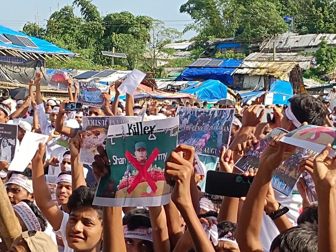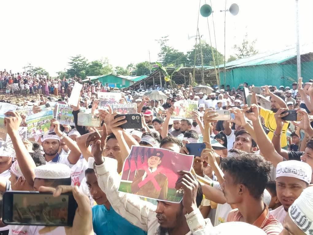 အာရက္ခတပ်တော်(AA)တပ်မှူးချုပ်၊ ဗိုလ်ချုပ်ထွန်းမြတ်နိုင်၊ ဒုတိယတပ်မှူးချုပ်ဒေါက်တာညိုထွန်းအောင်အပါအဝင်ခေါင်းဆောင်တွေကို နိုင်ငံတကာကအရေးယူပေးကြဖို့ ဘင်္ဂလားဒေ့ရှ်နိုင်ငံ၊ ဒုက္ခသည်စခန်းတွေရှိ ရိုဟင်ဂျာတွေဟာသြဂုတ်လ ၂၅ ရက်၊ ဒီနေ့ဆန္ဒပြတောင်းဆိုနေကြပါတယ်။
