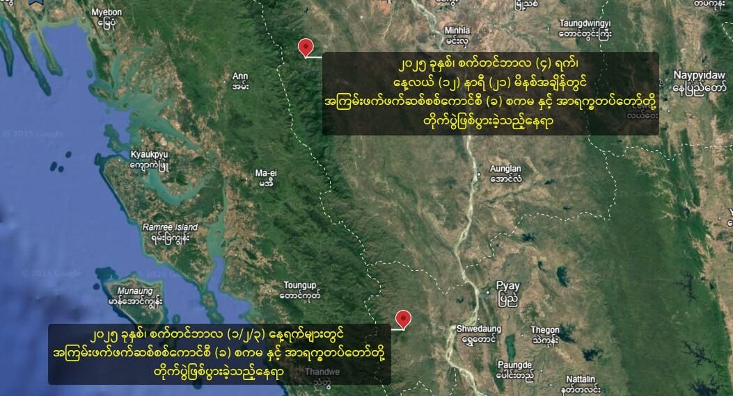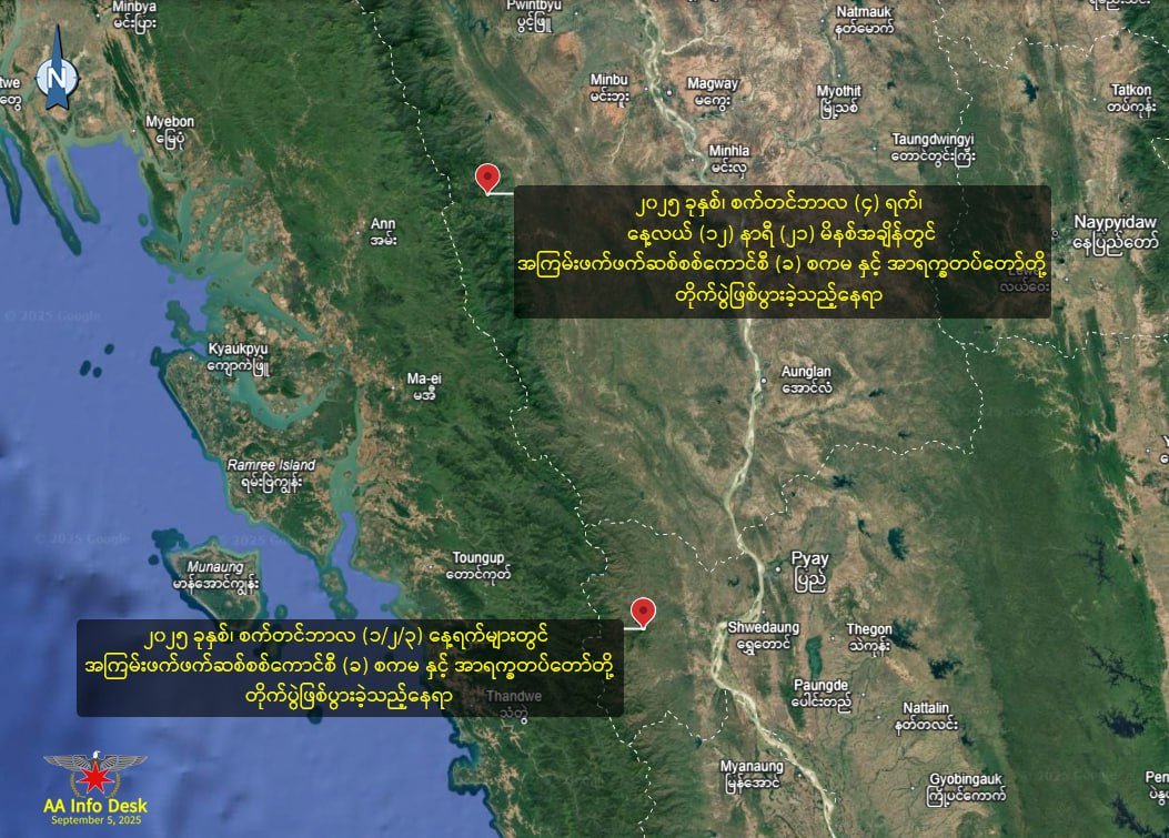 နောက်ပြီးဧရာဝတီတိုင်း-ရက္ခိုင်အစပ် စက်စက်ယိုရွာပတ်ဝန်းကျင်မှာလည်းတိုက်ပွဲတွေဖြစ်နေတယ်လို့ ဆိုပါတယ်။
