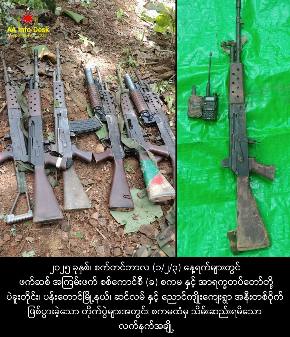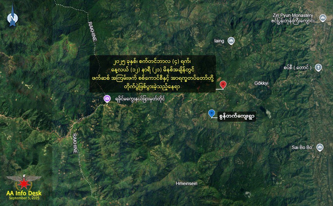 စစ်ကော်မရှင်တပ်ရဲ့ယာယီနည်းဗျူဟာမှူးအပါအဝင်ဗျူဟာရုံးအဖွဲ့ဝင် ၁၇ ဦးကို အာရက္ခတပ်တော်(AA)မှ လက်ရ ဖမ်းဆီးရမိခဲ့တယ်လို့ စက်တင်ဘာလ၅ ရက်၊ ဒီနေ့ထုတ်ပြန်ပါတယ်။